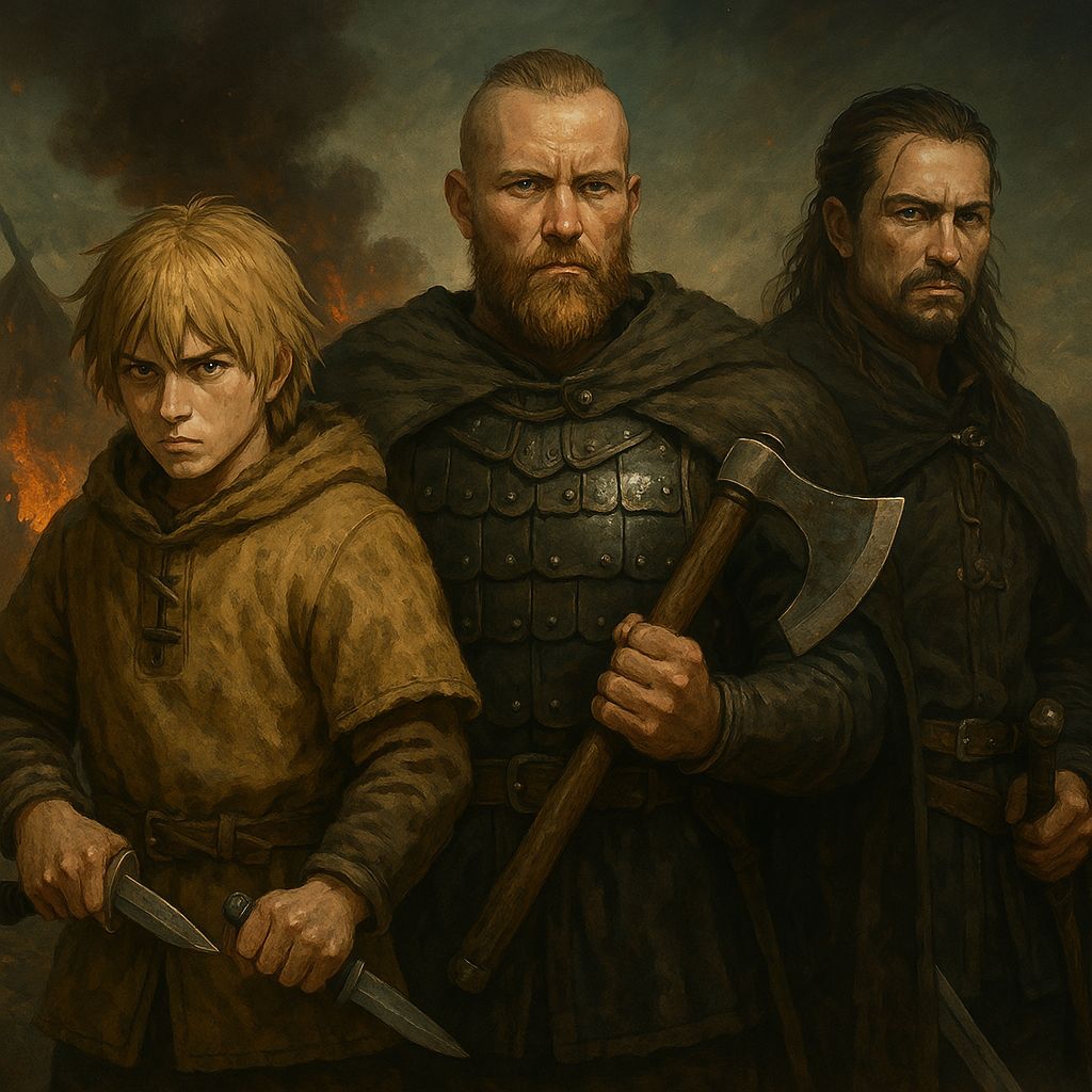 Thorfinn incarne la haine, puis la rédemption. Sa trajectoire est marquée par le refus de tuer et une recherche de sens, dans un monde où la violence est la norme.