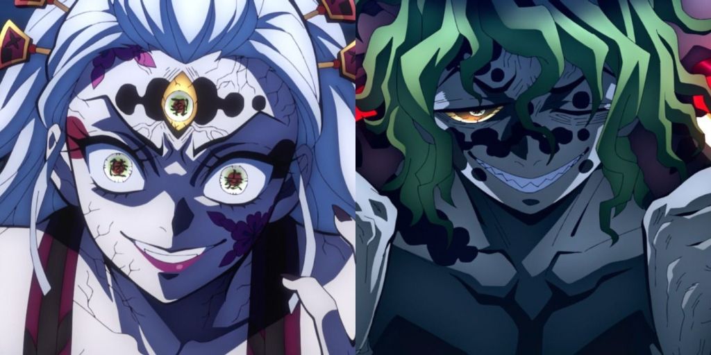 • Daki et Gyutaro (Lune Supérieure Six) – Ce duo fusionne haine et douleur. Victimes d’une vie d’abandon et de misère, ils transforment leur souffrance en une cruauté sans limites. Leur lien fraternel, déformé par la rancune, rappelle que les démons naissent souvent de cicatrices humaines.