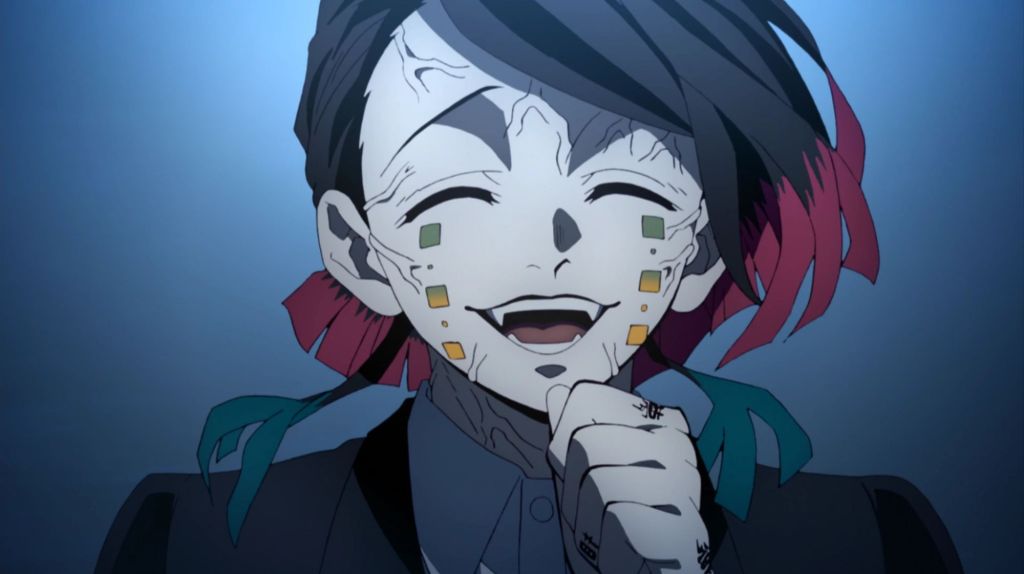 • Dōma (Lune Supérieure Deux) – Figure dérangeante mêlant séduction et vide émotionnel. Derrière ses manières polies se cache une absence totale d’empathie. Dévorant ses disciples au nom d’une fausse spiritualité, il incarne l’hypocrisie monstrueuse d’un démon qui se pare d’amour universel tout en détruisant sans remords.